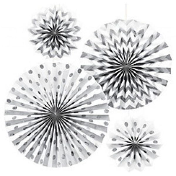 4 Paper Fans – Frosty White | Party Supplies Paper Fans