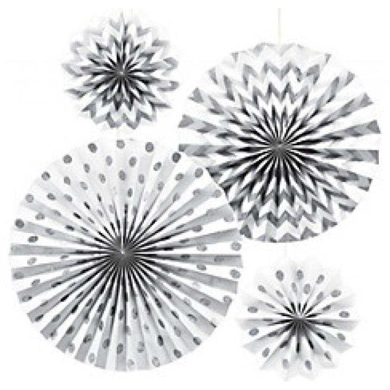 Glitter Frosty White Paper Fan Decorations Add A Fun And Trendy Touch To Your Party. This Pack Of White Fan Decorations Includes A Large White Paper Fan With Glittery Polka Dots, A Medium Paper Fan With Glittery Chevron, And Two Small Paper Fans — One With Polka Dots And One With Chevron!